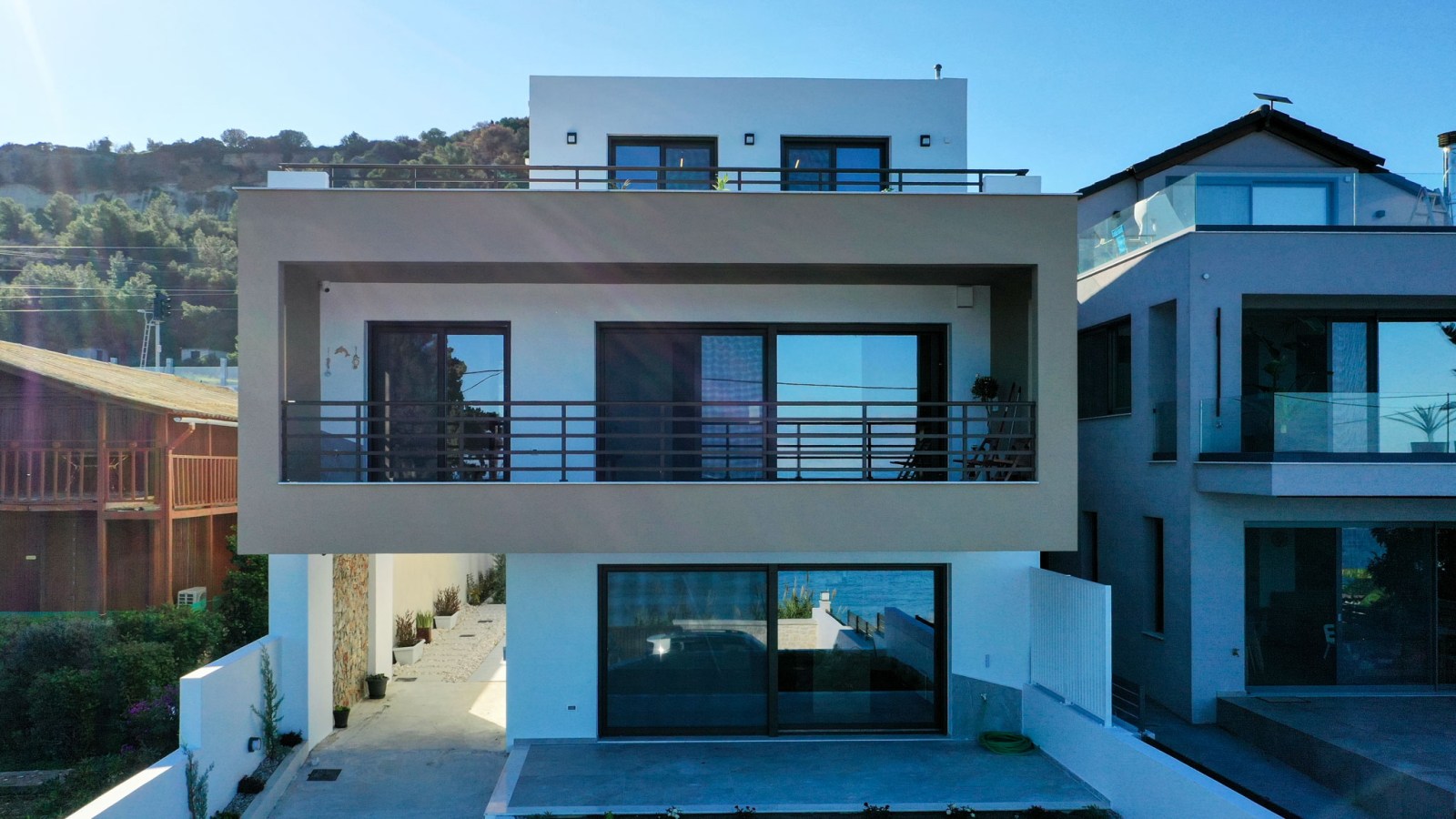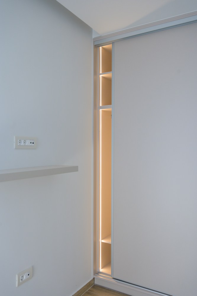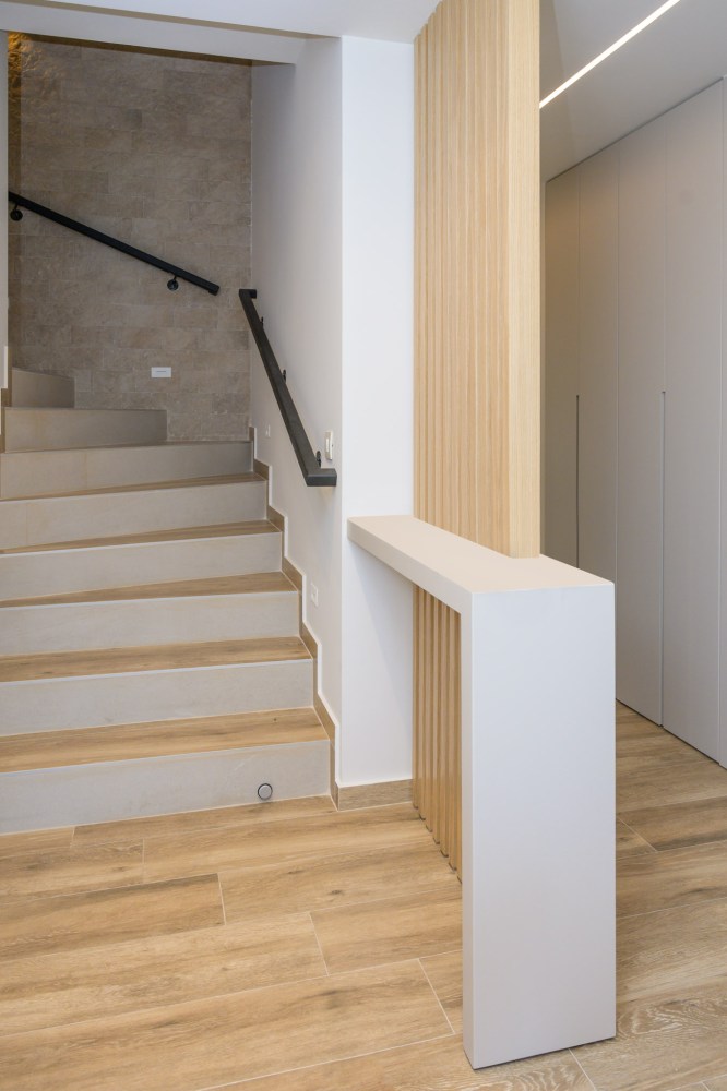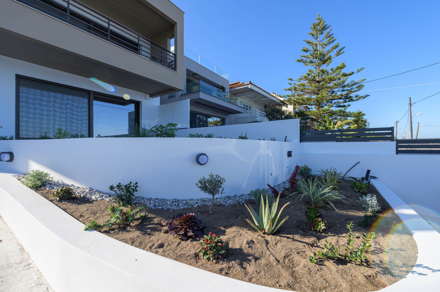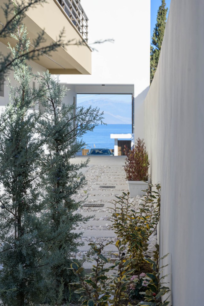 Ο σχεδιασμός βασίζεται σε καθαρούς όγκους και αυστηρή γεωμετρία, με ελεγχόμενη διάτρηση των όψεων και ενσωμάτωση ημιυπαίθριων μεταβατικών χώρων. Το κτίριο αξιοποιεί τον φυσικό φωτισμό και τον αερισμό ως βασικά εργαλεία σχεδιασμού, διαμορφώνοντας ένα σύγχρονο, λιτό και λειτουργικό περιβάλλον κατοίκησης.