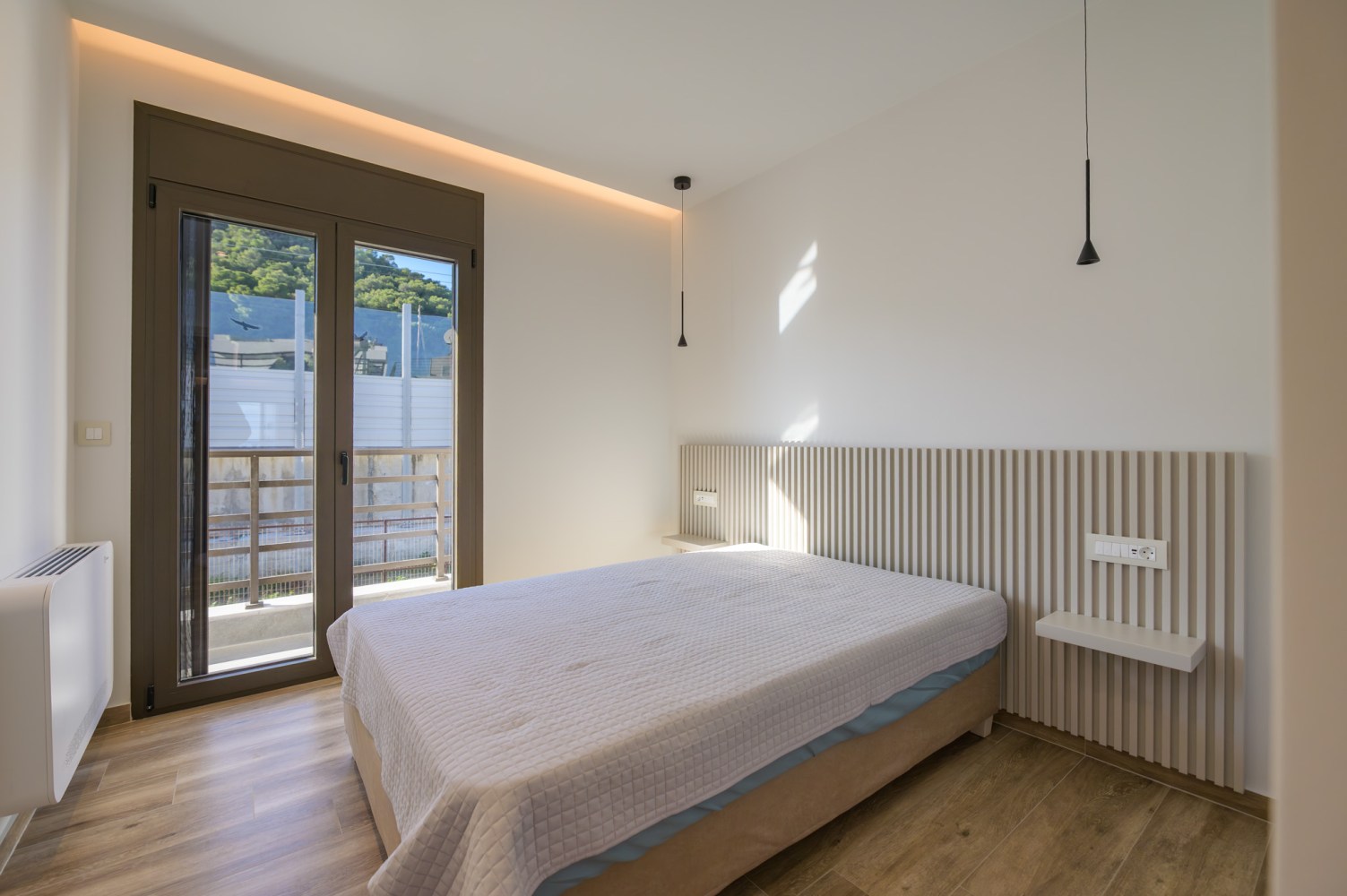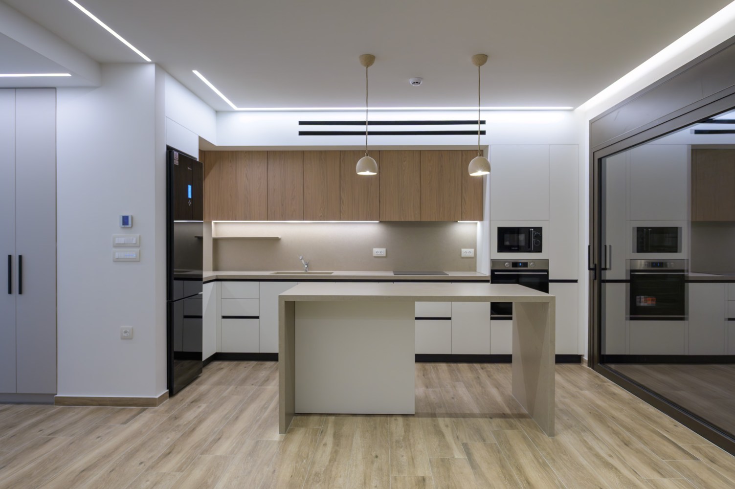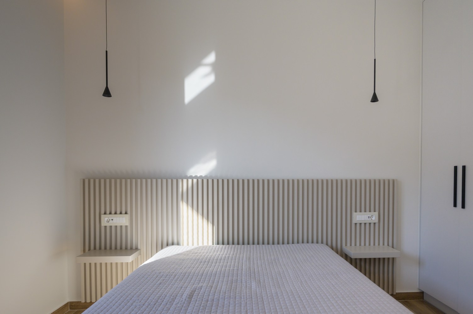 Ο σχεδιασμός βασίζεται σε καθαρούς όγκους και αυστηρή γεωμετρία, με ελεγχόμενη διάτρηση των όψεων και ενσωμάτωση ημιυπαίθριων μεταβατικών χώρων. Το κτίριο αξιοποιεί τον φυσικό φωτισμό και τον αερισμό ως βασικά εργαλεία σχεδιασμού, διαμορφώνοντας ένα σύγχρονο, λιτό και λειτουργικό περιβάλλον κατοίκησης.