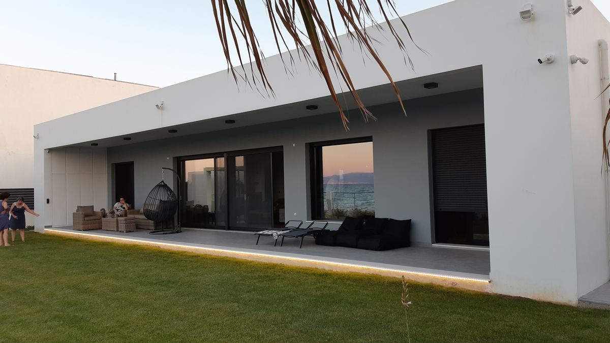Η κατοικία βρίσκεται στην Νεράντζα Κορινθίας, εντός οικοπέδου επιφάνειας 660 τ.μ. που εφάπτεται στον αιγιαλό.